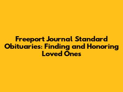 Finding Freeport Journal Standard obituaries is more than just a search for names and dates; it's a way to connect with the lives and legacies of those who have shaped the Freeport community. By utilizing the various online resources, print archives, and funeral home contacts, you can effectively locate the information you need. Remember to also explore the additional resources available for grief support and remembrance, allowing you to honor your loved ones and navigate the grieving process with strength and compassion.